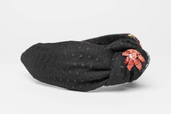 Black Floral Headband crafted to make a statement. This black headband for women features an embroidered fabric base adorned with delicate floral details that add a subtle pop of colour and charm.