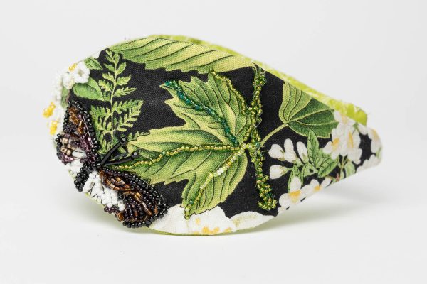 Wide headband for women, also known as a Boho Headband, created as a handcrafted statement piece.