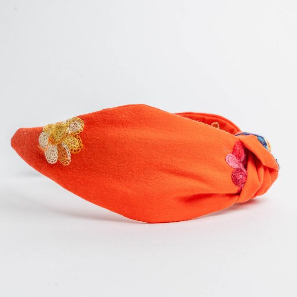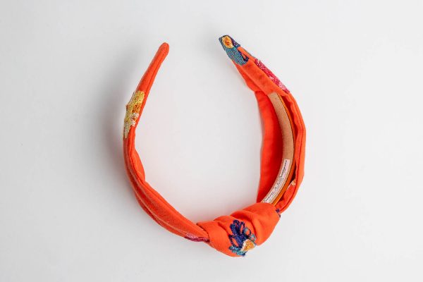 The Orange Embroidery Headband is the perfect summer accessory for women.