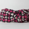 This vibrant fashion accessory features a striking plaid pattern with fuchsia, white, and black hues, making it perfect for adding a pop of colour to your outfit.