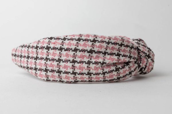 Featuring a soft pink plaid pattern with delicate pink and white hues, this knotted headband is a perfect addition to your collection of stylish hair accessories.